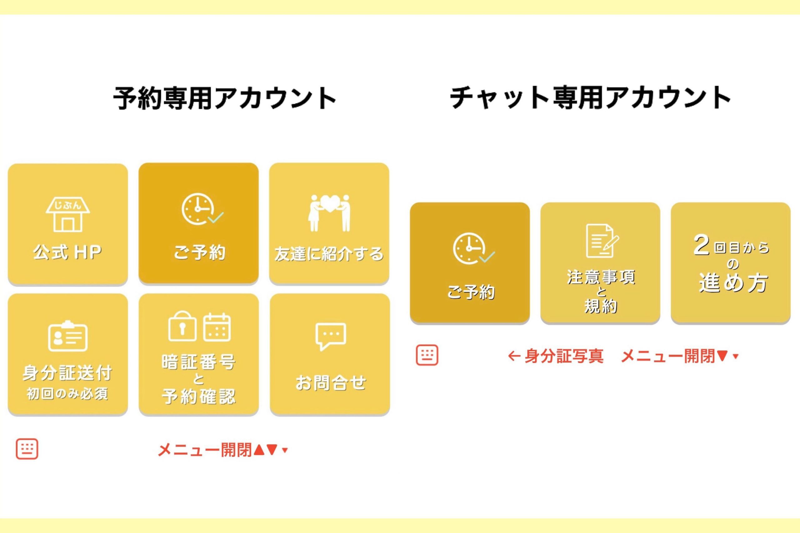 そのリンクの【注意事項と規約】を読んでいただき、ページ一番下にある「ご予約」のボタンを押すと、身分証が送信できるお問合せ専用のアカウントに飛びます。
