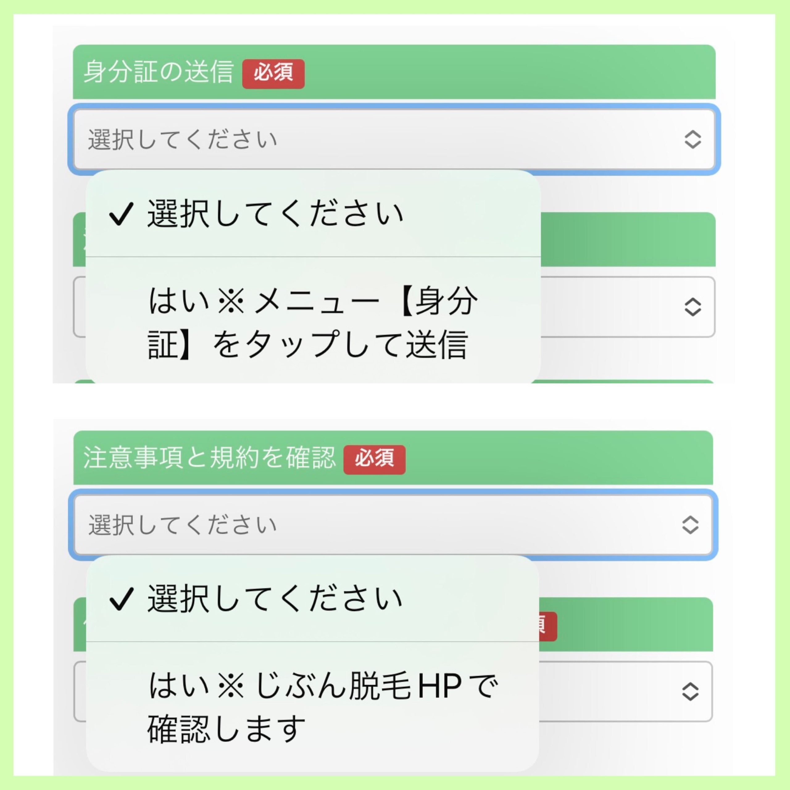 「注意事項と規約の確認」と「身分証の送信」を必ず承諾しなければ、予約ができないようにリピッテの管理画面から設定を行なっています。