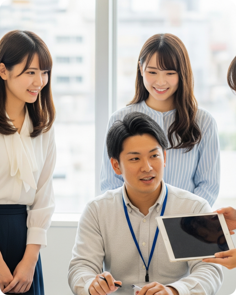 はい、OJTを中心とした研修体制があります。先輩社員との定期的な1on1や、チーム内での振り返りミーティングも実施しており、安心して業務をキャッチアップできる環境です。